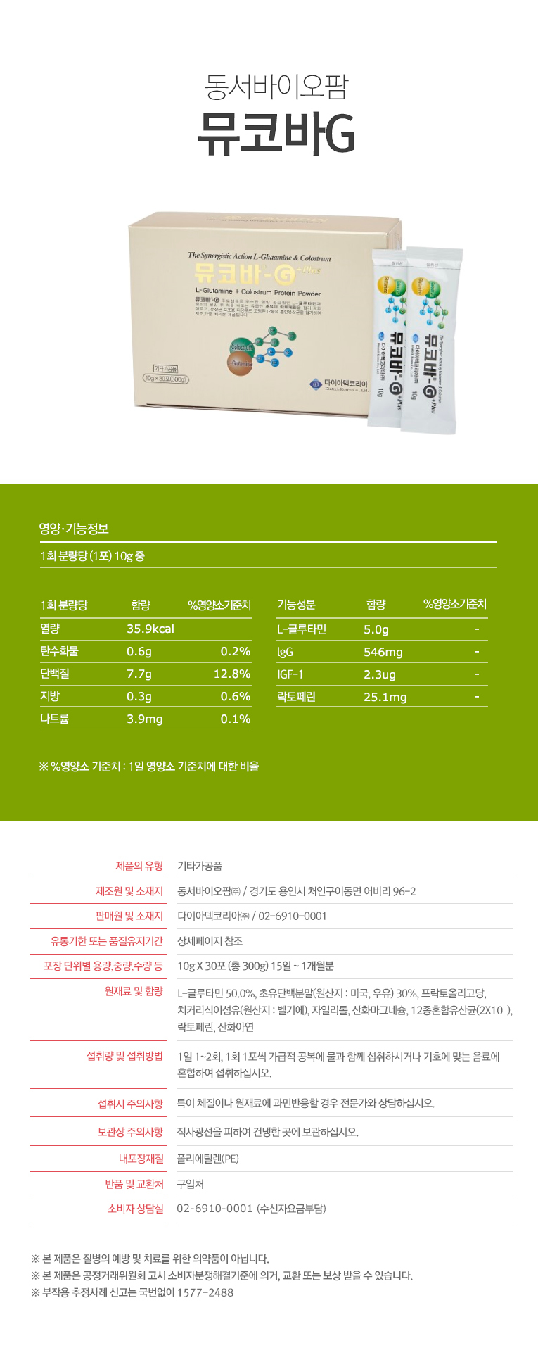 대부분의 면역세포는 위에서 발견되는데, 소의 초유에는 각종 면역인자와 성장인자가 함유되어 있어 장내 면역세포를 증강시키는데 도움을 준다고 합니다. 장 영양의 핵심 성분인 L-글루타민과 프로바이오틱스를 함유하고 있다고 합니다. 패키지에 표시된 성분을 확인하십시오.