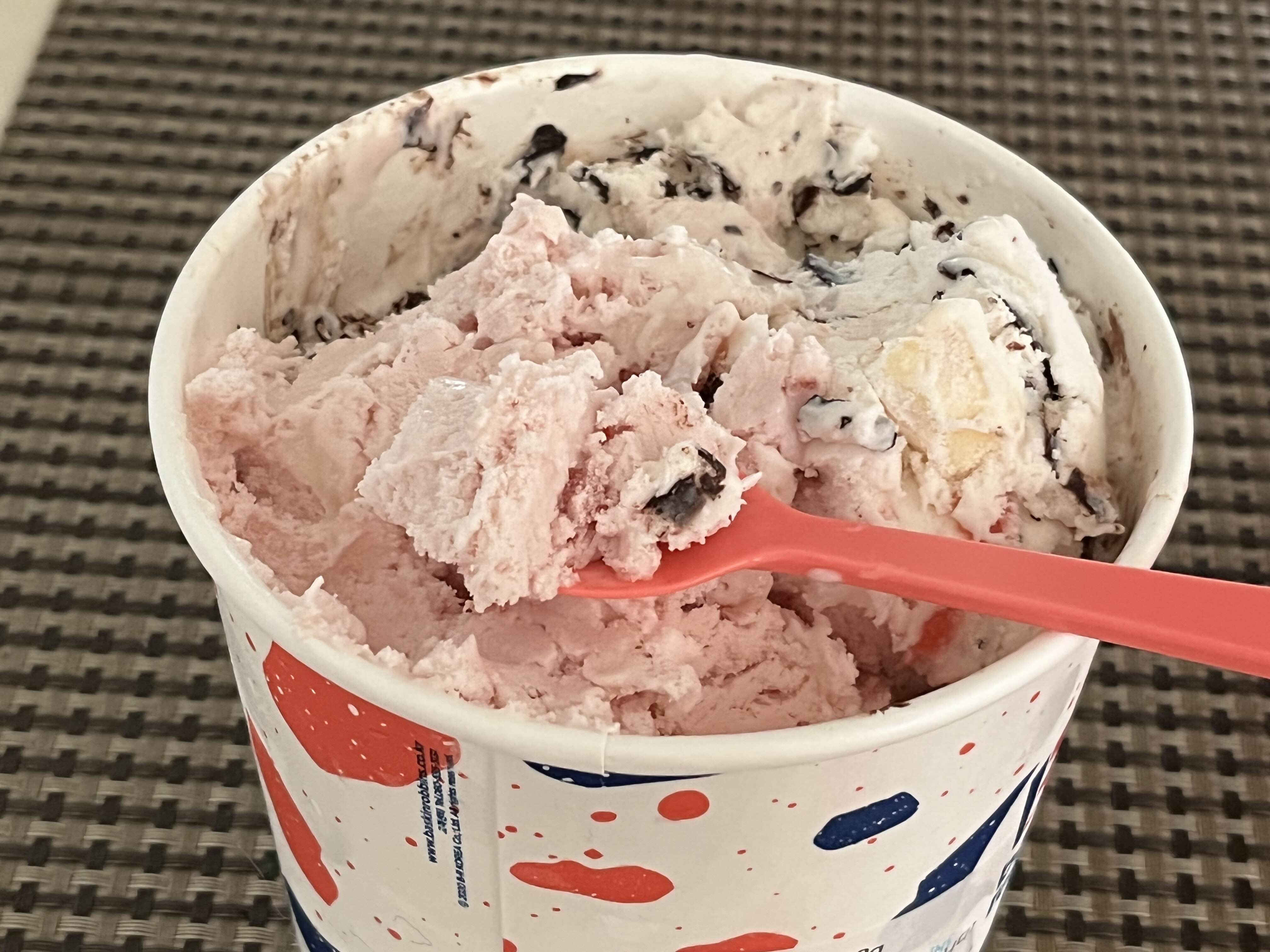 아이스크림은 아주 부드럽고 산뜻한 딸기맛 벚꽃색 아이스크림이었어요!