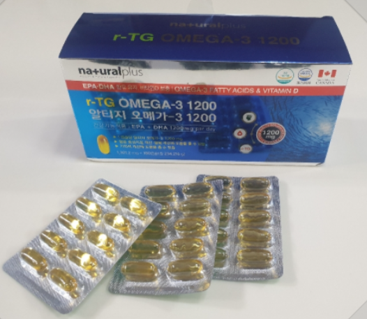 rTG Omega-3 1200 제품은 rTG EPA + DHA를 함유한 오일로 흡수율과 생체이용율이 좋습니다. EPA+DHA를 함유한 오일은 분자 구조에 따라 TG형, EE형, rTG형으로 나눌 수 있습니다. 그 중 rTG형은 EE형의 재에스테르화 형태이다. ◇EPA+DHA 함유 지방형▲TG형 – 생선에서 추출한 천연 형태 EPA+DHA 함유 오일의 분자 구조(에스테르화 포화지방산 제거)▲ EE형 – 불필요한 포화지방 제거(에스테르화 포화지방산 제거) ▲rTG형 – EE형을 다시 정제하여 높은 흡수율과 생체이용률, TG 분자 형태와 유사(TG형으로 에스테르화) Omega-3 1200 포인트 투! 총 EPA + DHA 1200mg을 위해 하루에 캡슐 1개를 섭취하세요. 캡슐당 총 EPA + DHA의 양이 중요합니다. RTG 오메가-3 1200은 1301.2mg 캡슐에 최대 1200mg의 EPA+DHA를 함유한 제품입니다. RTG Omega-3 1200의 기능에 대해 자세히 알아보십시오! ▲ 혈중 중성지방 개선에 도움을 줄 수 있다 – EPA와 DHA는 간에서 중성지방 합성을 방해해 혈중 중성지방 농도를 낮춘다. ▲ 혈액순환 개선에 도움을 줄 수 있음 – EPA와 DHA는 과도한 혈액응고를 조절하여 혈액순환을 원활하게 할 수 있음 ▲ 기억력 향상에 도움을 줄 수 있음 – 뇌를 구성하는 중요한 성분 중 하나인 DHA를 보충하면 기억력 향상에 도움이 됨. 알타쥬 오메가-3 1200포인트 세트! 중금속 및 오염에 대한 노출이 적은 작은 물고기 먹이사슬의 상위에 있을수록 바다에 있는 다른 물고기나 유해 물질을 먹으면서 중금속 오염에 노출될 가능성이 높아집니다. Natural Plus Altiji Omega 3 1200은 먹이 사슬의 바닥에 있는 작은 물고기로 만들어져 중금속에 대한 노출과 오염이 적습니다. 알타쥬 오메가-3 1200포인트 4! 비타민D 1,000IU 1일 권장량의 250% 함유 RTG 오메가3 1200 비타민D 1000IU 및 1일 권장량의 250% 함유. 하루 한 캡슐은 비타민 D 일일 권장량의 250%를 제공합니다. ▲ 칼슘과 인의 흡수와 이용에 필요 – 비타민D의 주요 기능은 혈중 칼슘과 인의 함량을 조절하고 균형을 유지하는 것이다. ▲ 뼈의 형성과 유지에 필요-신경과 근육의 기능 유지 뼈의 성장에 필요한 충분한 칼슘을 공급하지만 인산칼슘을 뼈의 주성분으로 만드는 역할도 한다. 이 제품은 골다공증 위험을 줄이는 데 도움이 될 수 있습니다. 알티지 오메가-3 1200 포인트 파이브! PTP 독립 포장, 편리하고 위생적인 ​​소비 EPA+DHA가 함유된 오일 특성상 산소와 열에 노출되면 쉽게 썩고 제품이 변질됩니다. RTG 오메가-3 1200은 PTP 타입으로 1일 1캡슐씩 개별 포장되어 있어 편리하고 위생적입니다. 알티지 오메가-3 1200은 캐나다에서 직수입한 제품으로 한국식품의약품안전청에서 기능승인을 받은 제품이고, 알티지 오메가-3 1200은 캐나다에서 직수입한 제품으로 한국식품의약품안전청에서 기능을 승인한 제품입니다. 의약청. 캐나다 청정지역에서 생산되기 때문에 더욱 믿을 수 있는 제품입니다. 알티지 오메가-3 1200은 캐나다에서 직수입한 제품으로, 식품의약품안전처로부터 그 기능을 인정받았기 때문에 안심하고 드셔도 됩니다. 풍부한 경험과 앞선 기술력으로 세계 각국에 건강기능식품을 제공합니다. 네추럴라이프의 모든 제품은 최신의 전문 자동화 설비에서 제조 및 포장되며 음질과 정확한 내용으로 신뢰를 쌓아 명성을 이어가고 있습니다. 이런 분들에게 RTG 오메가-3 1200을 추천합니다! ◇ RTG 오메가-3 1200은 이런 분들에게 추천합니다! ▲ EPA+DHA 함유 깨끗하고 안전한 오일을 섭취하고 싶은 분 ▲ 바쁜 생활과 불규칙한 식습관을 가진 현대인 ▲ 균형잡힌 영양이 필요한 성장기 어린이 및 청소년 ▲ 혈중 중성 혈중지질 및 혈액순환 개선이 필요한 분 ▲ 많이 섭취 간편식품피플 ▲ 기억력 향상에 도움이 필요한 사람 알지 오메가-3 1200 건강을 챙기세요! (제품명) 내츄럴플러스 RT 오메가3 1200 (섭취방법) 1일 1회 1캡슐을 물과 함께 섭취 (복용시 주의사항) 손이 닿지 않는 곳에 보관 (보관방법) 직사광선을 피하고 서늘한 곳에 보관 ◇영양 및 기능성 정보▲ EPA+DHA: 기억력 향상에 도움, 혈중 중성 혈중 지질 개선에 도움, 혈액순환 개선 ▲비타민 D: 칼슘과 인의 흡수 및 이용에 필요, 뼈 형성 및 유지에 필요, 골다공증 위험 감소에 도움이 됨 여기에 설명 . ◇ 혈액순환이란? – 혈액순환이란 혈액이 혈관을 통해 신체의 여러 부분으로 흐르는 것을 말합니다. 혈액은 신체의 여러 조직에 산소와 영양분을 공급하고, 세포에서 생성된 노폐물을 제거하고, 필수 호르몬을 운반하며, 외부 유해 물질로부터 세포를 보호하고, 적절한 체온을 유지하며, 지혈 역할을 합니다. 신체의 개선을 유지하십시오. 따라서 원활한 혈류는 신체 기능 유지에 매우 중요합니다. ※ 출처 : 식품의약품안전처 식품안전정보포털 건강기능식품 기능평가지침에 한함. 특히 혈중 콜레스테롤, 지방, 포도당과 밀접한 관련이 있어 적절한 식이요법으로 조절할 수 있다. 치킨, 햄버거, 고기, 피자 등 간편식 ※출처 : 식품의약품안전처 식품안전정보포털 홈페이지 기능성건강기능식품 평가지침 남들이 챙겨주는데 어쩔 수 없다! Natural Plus RT Omega 3 1200은 우리 가족의 건강을 위해 권장되는 기억력과 혈중 중성 지방을 개선하는 데 도움이 될 수 있습니다. ■ 내추럴플러