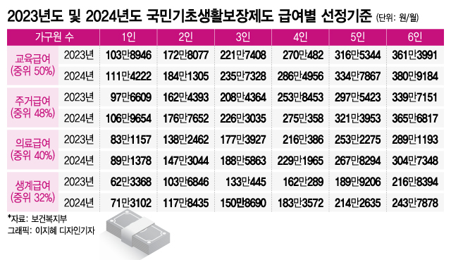 첫째, 보건복지부가 매년 발표하는 기준 중위소득은 4인 가구 기준으로 전년 대비 6.42% 증가했다. 이에 따라 기준중위소득 32% 이하 소득자에게 지급되는 생활수당은 4인 가구 기준 1,833,572원~최대 1,951,287원(6.42%), 4인 가구 기준 713,102원~765,444원(6.42%)이다. 1인 가구의 경우 7.34%). %). 생계 및 의료급여 지원의무자의 기준은 연수입 1억원 이상 또는 일반재산 9억원 초과에서 연수입 1억3천만원 초과 또는 일반재산 12억원 초과로 완화되었으며, 일반재산 적용시에는 환산율에 따라 자동차 기준이 배기량 1,600cc, 차량가격 200만원 미만에서 배기량 2,000cc, 차량가격 500만원으로 변경됐다. 아래로 완화되었습니다. 아울러, 노인들의 경제활동 활성화를 위해 근로소득·사업소득 공제 대상을 75세 이상에서 65세 이상으로 확대한다. 또, 올해 생계급여 수급자는 1175가구 2272명(3.2%) 증가할 것으로 예상돼 생계급여예산은 지난해보다 459억 원 늘어난 3224억 원을 편성하게 됐다. 기초생활보장에 관한 자세한 사항은 보건복지부 콜센터(☏129)나 거주지 관할 행정복지센터로 문의하세요. 앞으로도 저소득층의 삶의 질 향상을 위해 폭넓은 복지서비스를 실시하겠습니다!